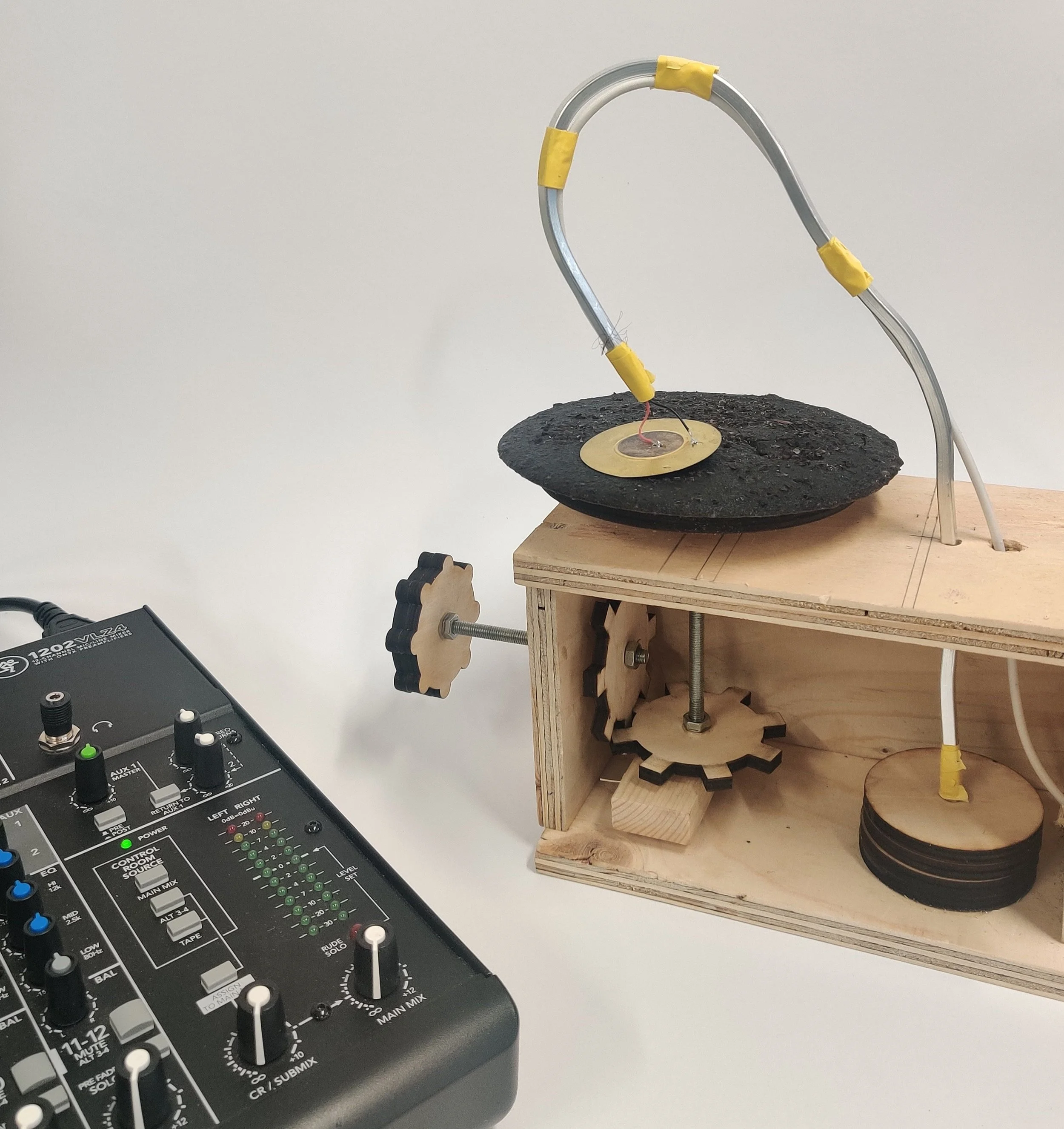Drawing inspiration from vinyl records, we birthed discs from these biomaterials. Jacob, a brilliant mind in our team, crafted the 'Shroombox' at LCC's workshop. Designed intricately, a contact microphone would play the disc's surface, creating distinct sounds.