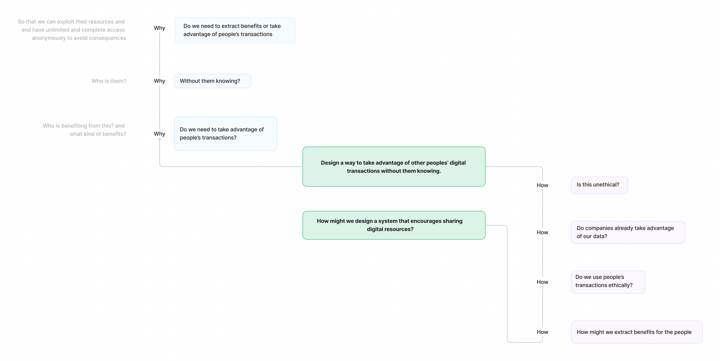 The brief from IBM was “to design a way to take advantage of other people's digital transactions without them knowing”. Still, obvious ethics concerning dark patterns and users being exploited for their data led to subverting the brief.